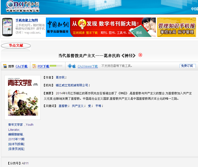 14、中国知网收录《青年文学家》期刊2015年4月11期葛亦民论文
